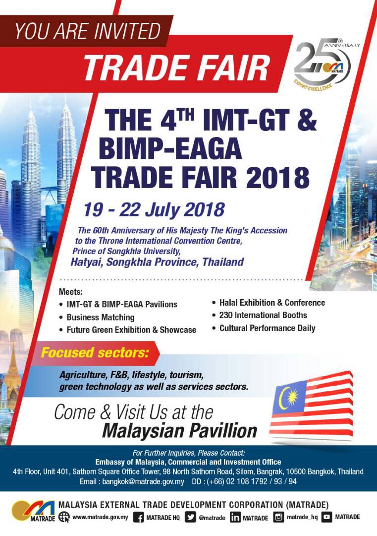 I am pleased to forward the invitation to “the 4th IMT-GT & BIMP-EAGA Trade Fair 2018”