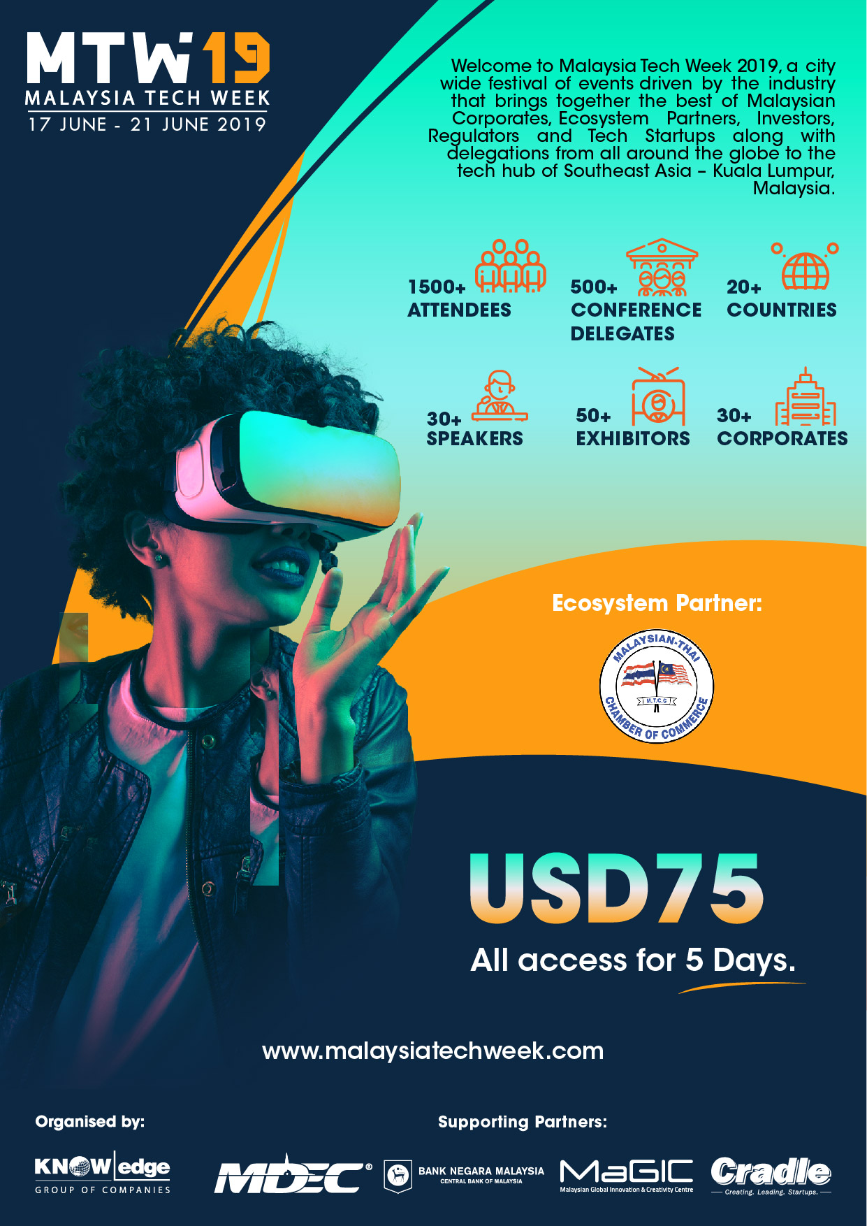 Malaysia Tech Week 2019 (MTW19), a citywide festival of events driven by the industry that brings together the best of Malaysian Corporates, Ecosystem Partners, Investors, Regulators and Tech Start-ups along with delegations from all around the world to the Tech Hub of Southeast Asia – Kuala Lumpur, Malaysia.
