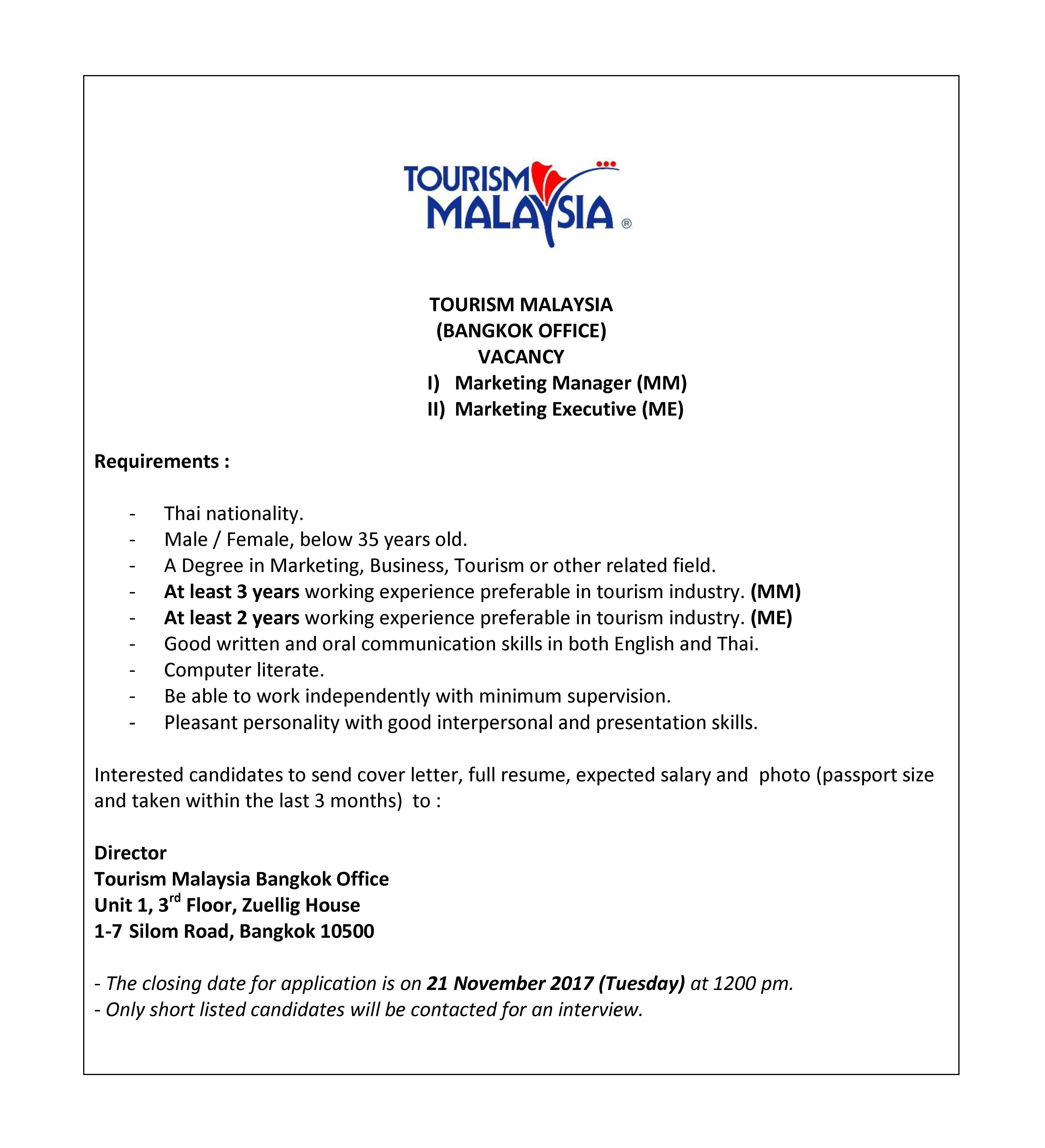 For further inquiries, please contact Khun Nichapatt, Tourism Malaysia at Tel. 02-636 3380-3.