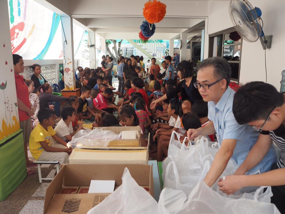total of 50,000 Baht in food, rice, necessities such as diapers, towels, milk and cash.